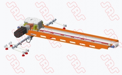 直線七軸采用雙倍速的機構,末端裝備了快換端拾器,能夠實現大型板料(不適合常規旋轉搬運軌跡)的直線搬運,提高生產節拍。