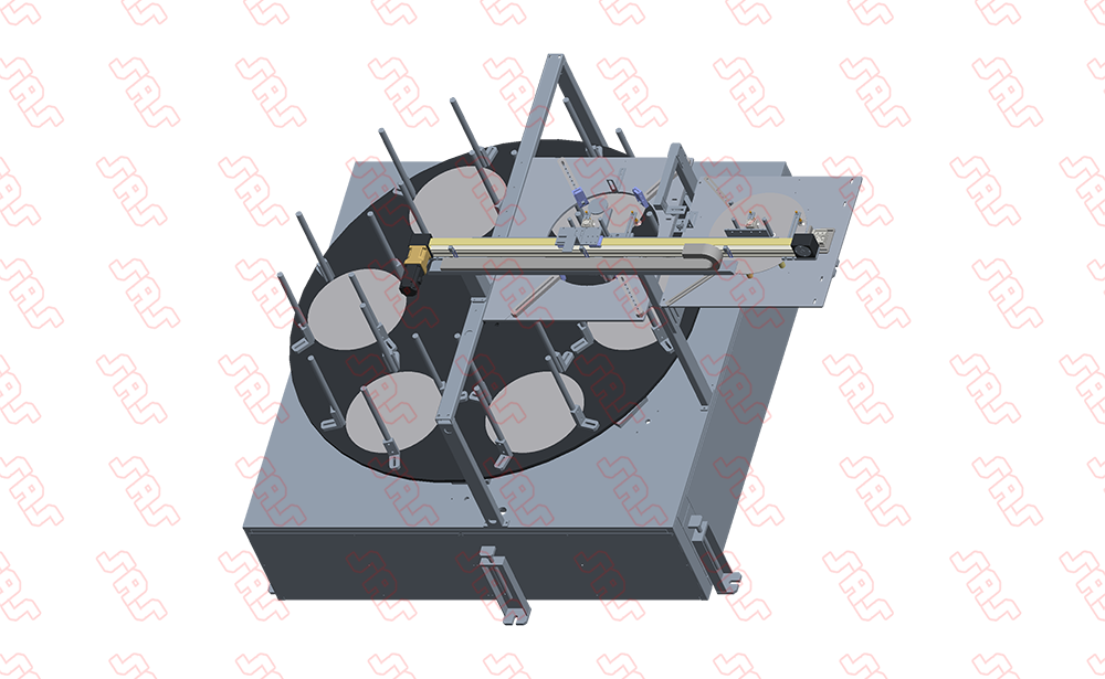 將4個或更多的拆垛工位加上1個拆垛機械手集成在一個機架上,節省空間,適合600mm以下的厚板料,板料經過片料機的拆垛和對中并輸送到機器人取料位置。