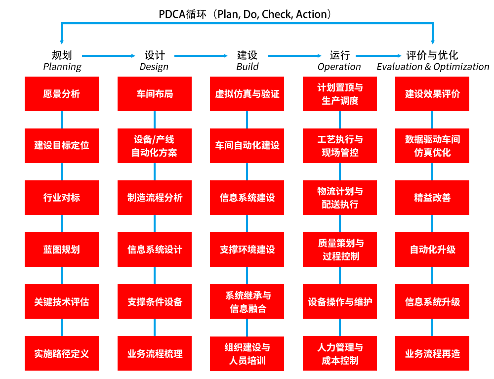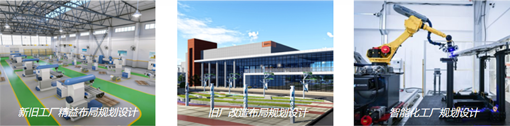 信息化(MES)與自動化協(xié)同生產(chǎn),3D建模及動畫仿真優(yōu)化,工廠精益化布局規(guī)劃,智慧物流系統(tǒng)。